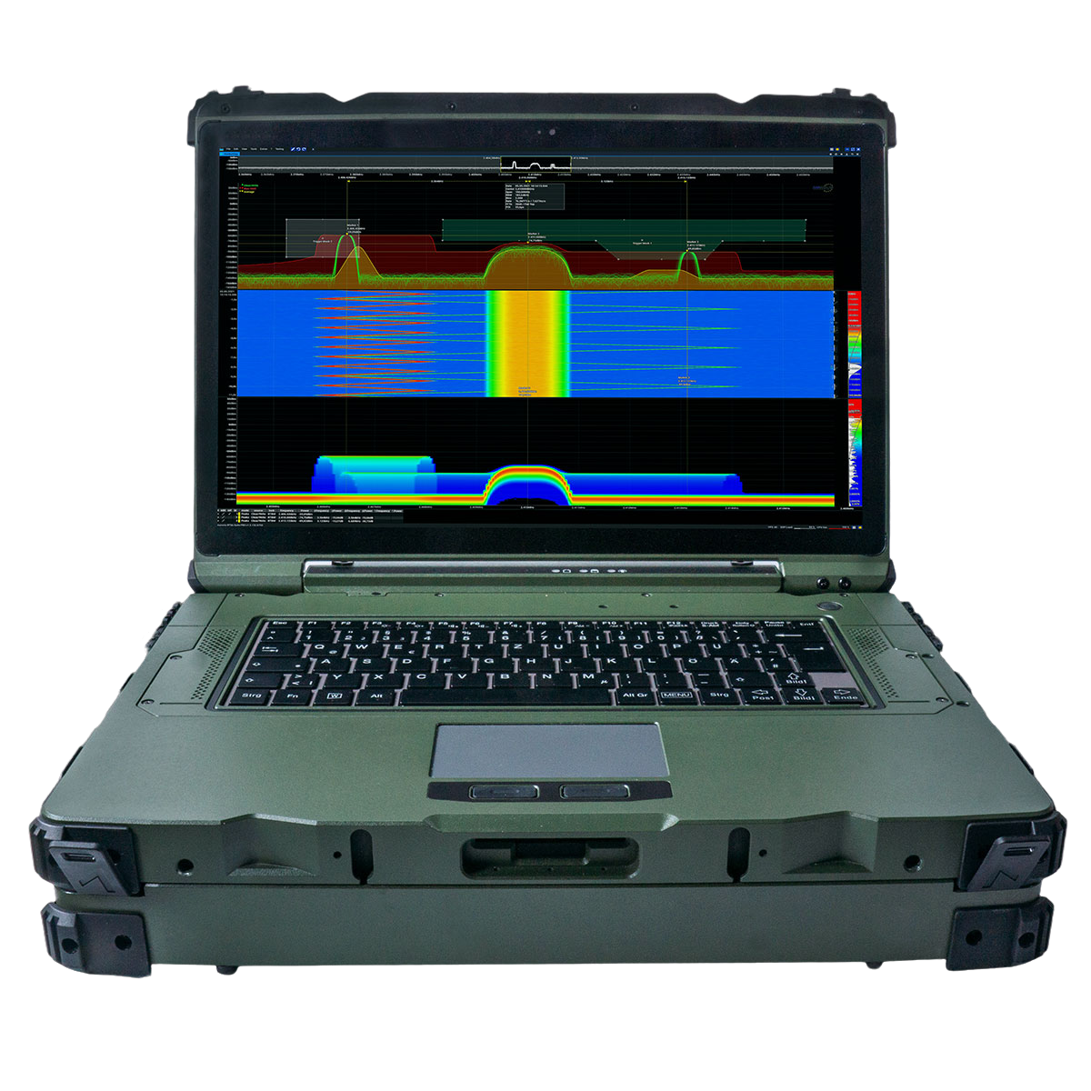 Анализатор спектра Aaronia AG Spectran V6 MIL Pro – высококачественное оборудование для мониторинга частот, способное не только их распознавать, но также анализировать, хранить, воспроизводить и захватывать. С помощью этой модели вы сможете обнаружить помехи, провести микроволновые и радиочастотные измерения, тестировать Wi-Fi и другие беспроводные сети, проводить мобильное тестирование в режиме реального времени и многое другое. Устройство выполнено в форм-факторе ноутбука, помещенного в ударопрочный корпус, оснащенный встроенным анализатором.