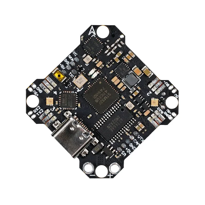 Бесколлекторный контроллер полета BetaFPV F4 1S AIO 12A разработан для установки в трехдюймовые дроны. Устройство совместимо с моделями HX115 SE и HX115 LR. Отличительная особенность этой модели контроллера состоит в возможности установить его на дрон с рамой больше, чем 65-75 мм. В контроллере специально изменена форма платы, чтобы его можно было подключить к раме в 85 мм. В результате использования этой модели контроллера вы получаете впечатляющие возможности полета, управления и маневренности.