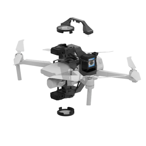 Insta360 ONE R Aerial Add-On представляет собой комплект дополнительного оборудования для экшн-камеры, который устанавливается на дрон. Данный набор включает в себя модуль с объективом, аккумулятор, крепление для установки на дрон, пару защитных линз и крышку на объектив. Дополнительный аккумулятор обеспечит камеру с объективом нужным запасом электропитания, а надежные крепления будут гарантировать их прочную фиксацию на беспилотнике.