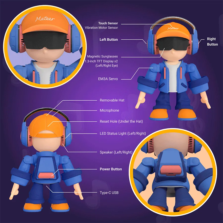 Meteer - это не просто игрушка, а настоящий танцующий партнёр с характером. Он вдохновляет детей двигаться, фантазировать и общаться с техникой легко и непринуждённо.