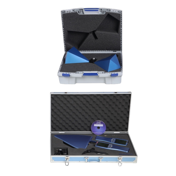 В набор входят два анализатора, один из которых оснащен внутренним предусилителем, биконическая измерительная ручная антенна, адаптеры и кабели для подключения и питания. В комплекте есть два алюминиевых кейса, в которых на своих местах размещается все оборудование. Кейс лучшим образом подходит для бережного хранения оборудования и его транспортировки к месту проведения исследований. Каждый из приборов отличается высоким качеством, прошел калибровку и стабильно работает в разных погодных условиях.