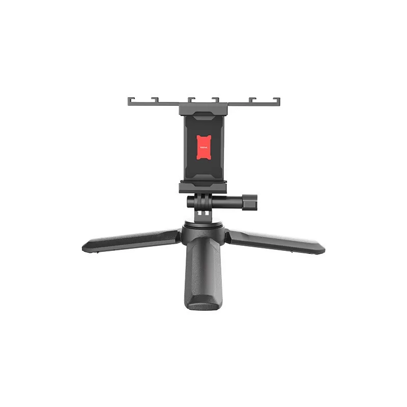 Монопод в комплекте Mirfak Audio Vlogging выполнен из алюминия и оснащен телескопической конструкцией. Вы можете регулировать его длину от 190 мм до 695 мм. Штатив выполнен из качественного пластика. Его можно использовать как ручку и тем самым увеличить длину монопода или же использовать как держатель для телефона при статичной съемке. Держатель комплекта рассчитан на смартфоны с шириной от 56 до 84 мм. В держатель встроена особая рамка с крепежами, с помощью которых можно установить лампу, микрофон или любое другое дополнительное оборудование.