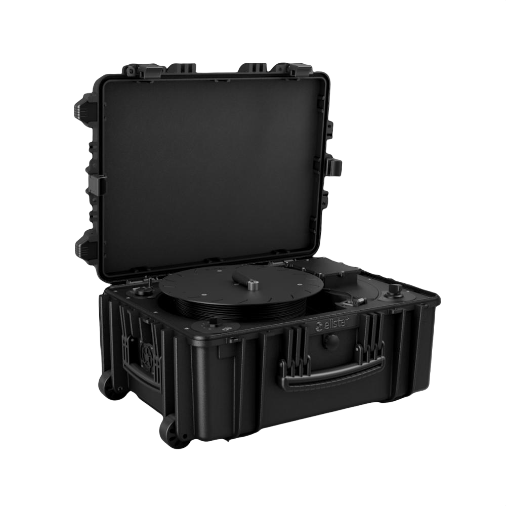 Наземная привязная станция питания Ligh-T4 от бренда Elistair предназначена для питания беспилотника во время полета. Устройство обеспечивает энергией беспилотник, пока тот находится в воздухе, и тем самым продлевает в несколько раз время его работы и значительно расширяет его возможности применения. Питание беспилотника производится с помощью прочного, тонкого и надежного кабеля. По кабелю передается не только энергия, но и производится обмен данными на скорости до 200 МБ/сек.