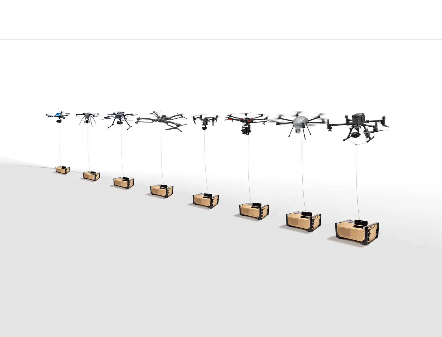 В станции используется эффективная система намотки кабеля, а также применяется система оптимизации напряжения. За счет этих технологий пользователь получает более высокую энергоэффективную работу дрона и стабильное время полета подключенного к станции. Система оснащена кабелем длиной 15 см для дрона. Устройство обладает высоким уровнем выходной мощности в 2200 Вт и питается от сети 220-250 В.