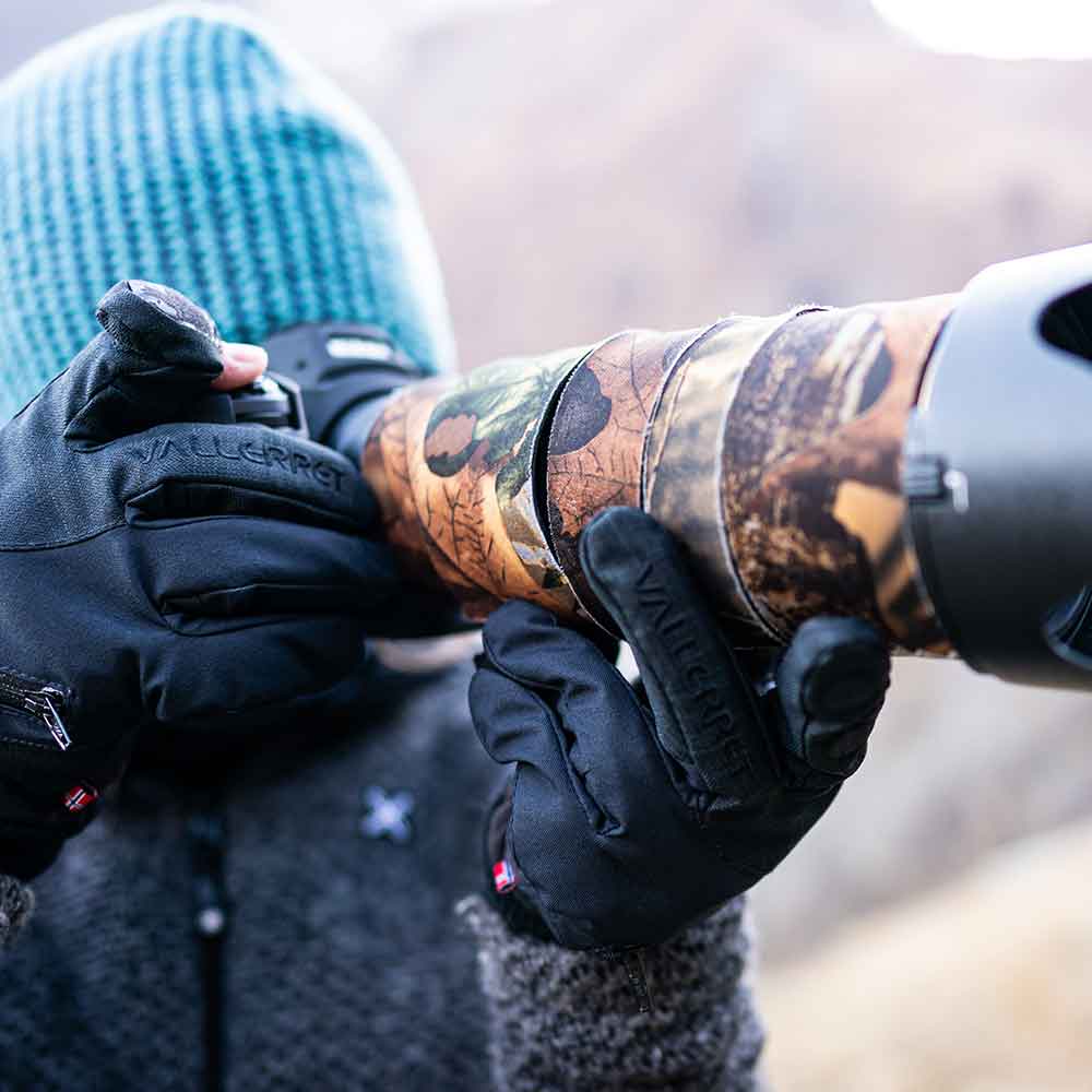 Перчатки для фотосъемки Vallerret Women’s Nordic Black разработаны для использования в холодную морозную погоду зимой. Аксессуар тщательно скроен и имеет важную особенность: указательный и большой палец можно частично открыть. Это особенно удобно при проведении фотосъемки. Разъемные элементы перчатки плотно прилегают друг другу за счет магнитной застежки, быстро снимаются и надеваются обратно. В результате даже при работе на морозе вы открываете только часть пальцев, которыми управляете техникой и выполняете необходимые настройки.
