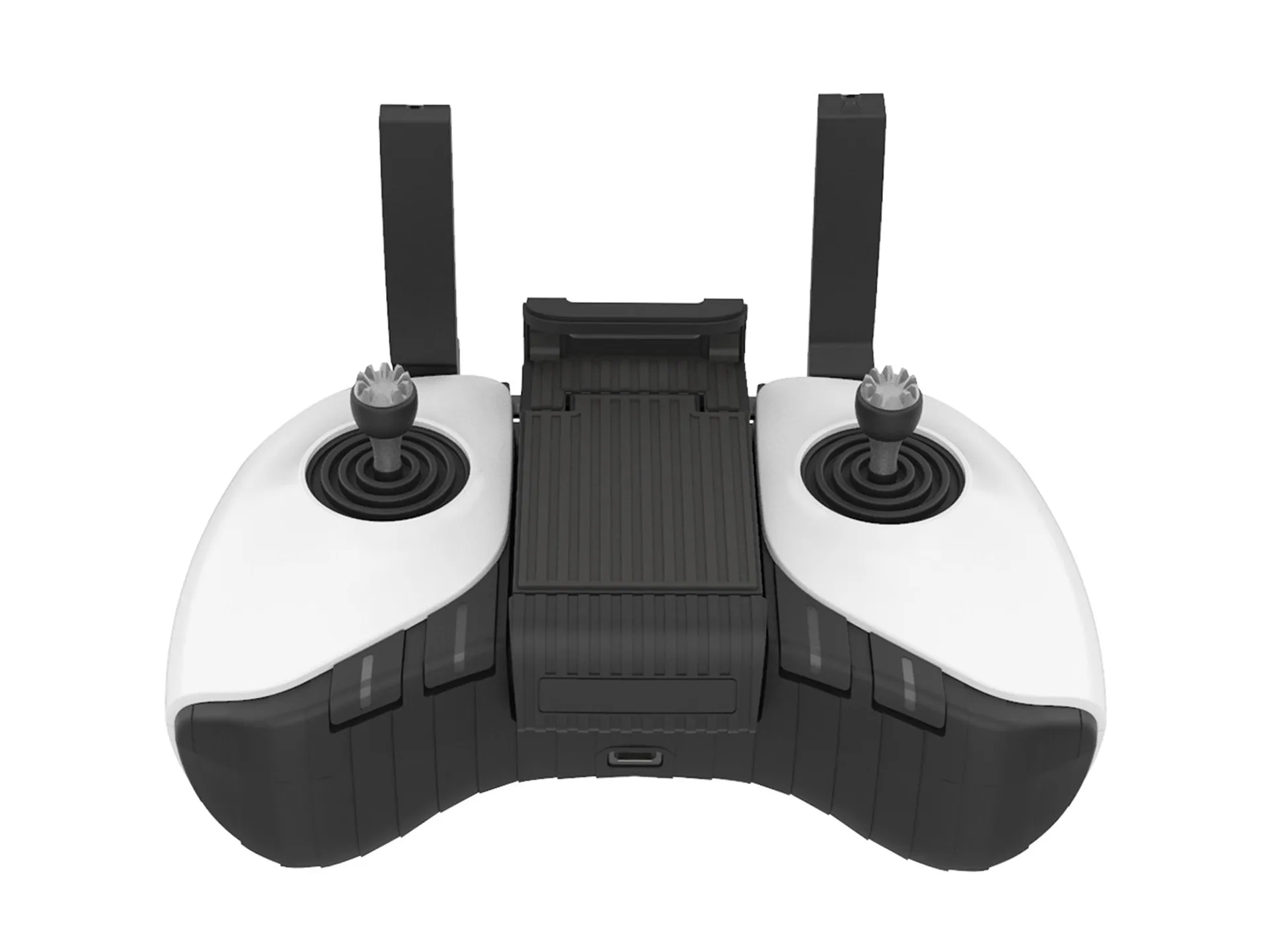 Пульт дистанционного управления (в комплекте) работает от аккумулятора, который не требует подзарядки около 20 часов. Он позволяет контролировать скорость, размещать наживку, управлять световыми элементами дрона и многое другое.