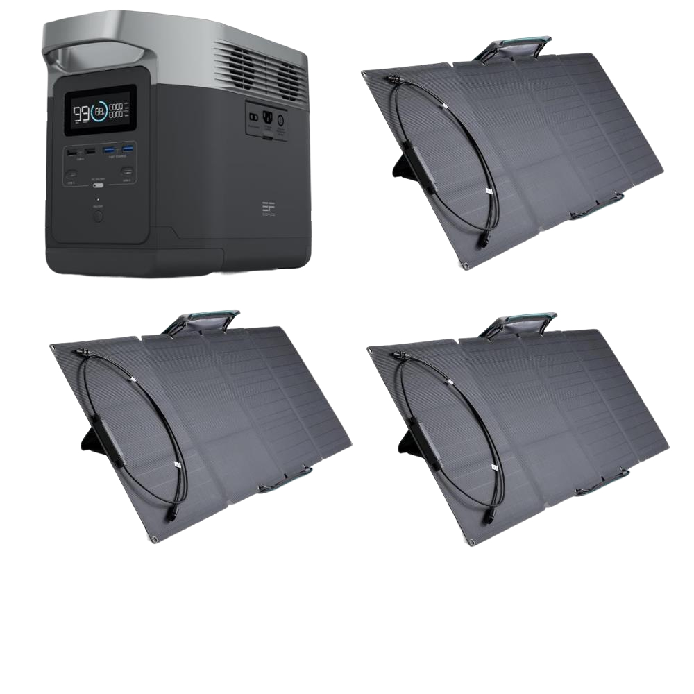 | Комплектация | Портативная зарядная станция Ecoflow Delta / Сумка Ecoflow Delta / Кабель для зарядки AC - 1 шт / Солнечный зарядный кабель - 1 шт / Автомобильный зарядный кабель 1,5 м - 1 шт / Солнечная панель Ecoflow 110W - 3 шт / Сумка для солнечной панели Ecoflow - 1 шт / Документация |
