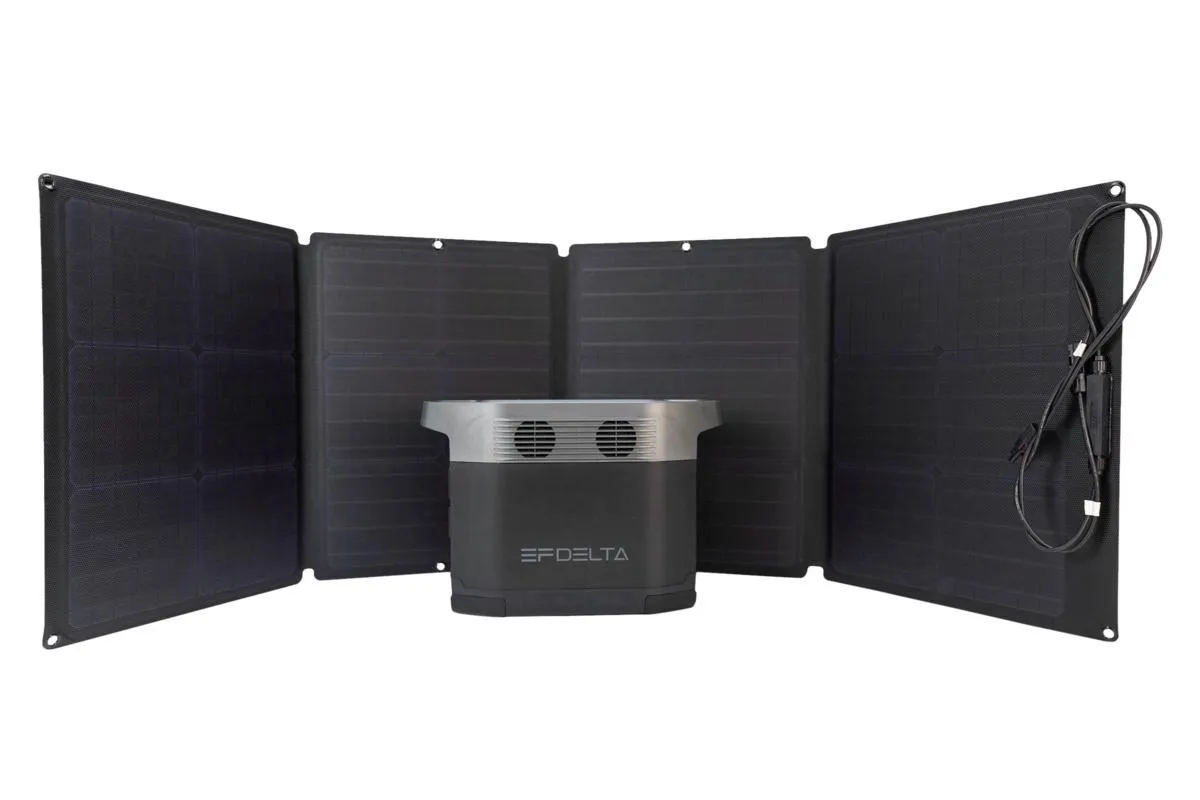 Портативная зарядная станция Delta с солнечной панелью 110W от бренда Ecoflow – высокотехнологичный готовый комплект для получения электроэнергии из возобновляемого источника и использования вырабатываемой энергии в любом месте. Возьмите с собой зарядную станцию во время автомобильных путешествий, работы на свежем воздухе, туристических походов или установите дома на случай незапланированных отключений электроэнергии.