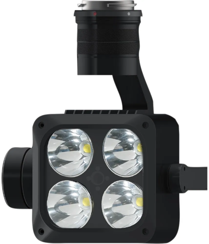 | Дополнительные возможности | Совместим с двойными нижними подвесами дронов серии Matrice 200 обеих версий, а также с подвесами серии Zenmuse / Встроенная система воздушного охлаждения / Работает в трех режимах: «Всегда включено», «Мигает» и «SOS» / Световой поток: 10200 lm / Рабочая дистанция: 150 м / Площадь покрытия: 1863 кв.м при 120 м; 323 кв.м при 50 м / Освещенность: 4 lux при 120 м; 11 lux при 60 м; 47 lux при 30 м / Диапазон угловой вибрации: ±0.02° / Контролируемый диапазон: Угол крена: от -90° до +90°, Угол рыскания: ±170° / Макс. контролируемая скорость: Угол крена: 60°/с, Угол рыскания: 60°/с |