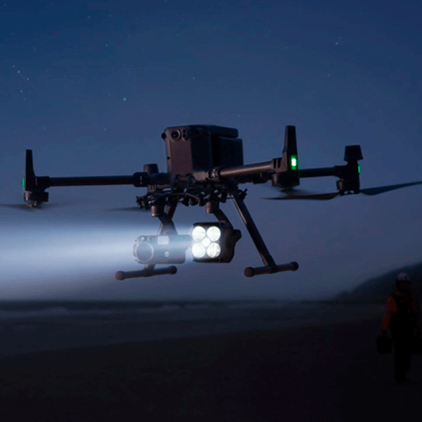 Ключевой особенностью Zenmuse S1 является интеллектуальное выравнивание светового луча: при совместной работе с камерами серии Zenmuse H30 прожектор синхронизируется с подвесом камеры, автоматически направляя свет в её поле зрения. Кроме того, установка двух таких прожекторов на дрон Matrice 400 позволяет управлять ими одновременно, значительно расширяя возможности дронов в сложных ночных операциях. Этот комплект станет надёжным решением для профессионалов, которым необходим высокий уровень безопасности и эффективности в условиях низкой освещённости.