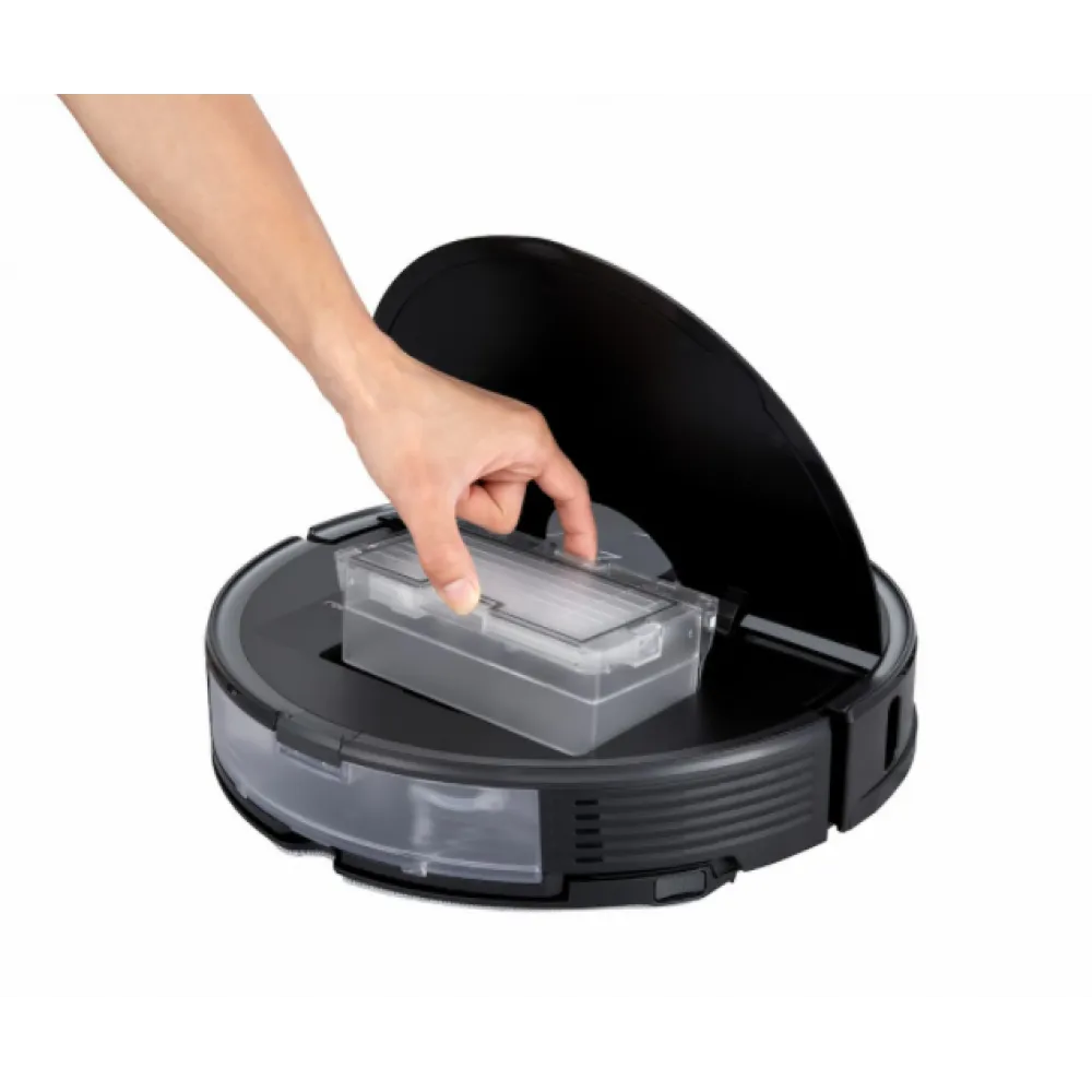 Устройство поддерживает два режима работы. Вы можете собрать мусор и пыль в режиме сухой уборки или же вымыть полы в режиме влажной уборки. В корпусе пылесоса установлен вместительный резервуар для воды объемом 300 мл, которого хватит на уборку 200 кв. метров помещения. За счет емкого аккумулятора мощностью 5200 мАч пылесос может проводить уборку на территории до 250 кв. метров. Продолжительность работы при полностью заряженном аккумуляторе составляет 3 часа.