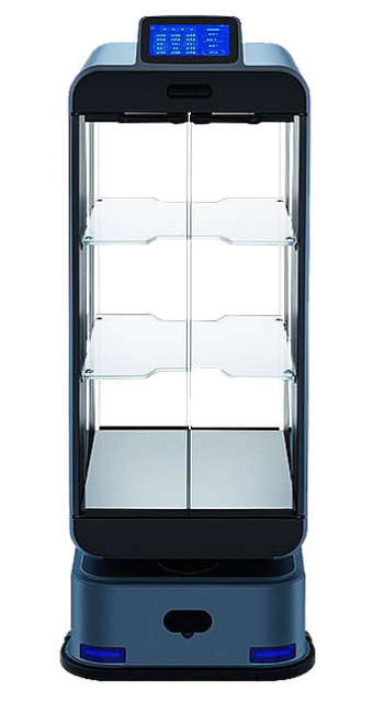 Эта модель отличается закрытой конструкцией с поддержкой автоматической очистки пространства внутри. При доставке внутри такого робота блюда остаются защищенными от внешних факторов: пыли, грязи и других загрязнений. Клиенты получают блюда, которые минимально контактировали с окружающей средой и остались без загрязнений. Благодаря двусторонним дверцам процедура подачи блюда максимально упрощена. Кабина с подносами защищена от воды и пыли, является маслостойкой и быстро очищается от внешних загрязнений. Эта модель больше адаптирована к разным условиям эксплуатации и может работать в самых сложных условиях.